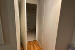 Agencement : Une entrée avec placards, une cuisine équipée (plaques et frigo) ouverte sur un séjour lumineux.