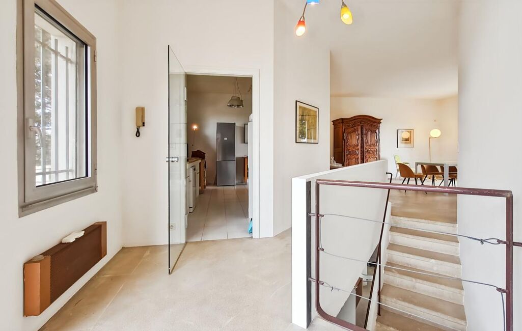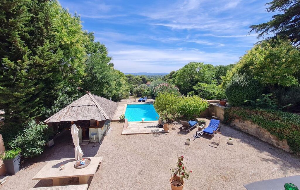 En exclusivité sur les Angles quartier prisé de Candau, limitrophe de Villeneuve les Avignon, en position dominante avec une vue dégagée sur les Alpilles et la vallée du Rhône, Maison d'architecte de 217 m² habitables sur 2000 m² de terrain avec piscine. Dès l'entrée le charme opère, un escalier en pierre conduit au 1er étage où l'espace de vie offre des volumes généreux, orienté plein sud, la luminosité est omniprésente. Un vaste séjour salon des plus convivial, agrémenté d'une cheminée, une cuisine avec deux accès pour plus de praticité, une suite parentale avec dressing et salle de bain privatifs, ouverte sur le jardin, un bureau. Au rez de jardin, 3 chambres spacieuses, chacune dotée d'une salle d'eau privative. Cellier cave et garage complètent ce bien. Une grande cour permet de garer une dizaine de véhicules.