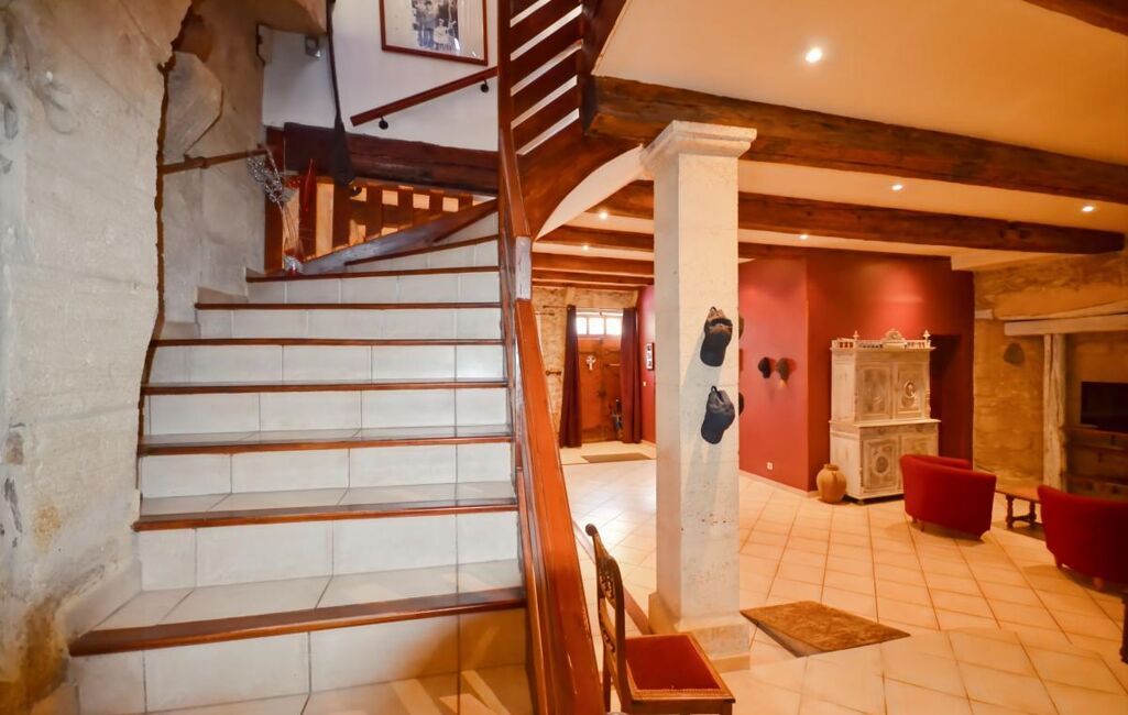 Un bel escalier vous emmène à l'étage avec 3 chambres, des toilettes indépendantes, une salle d'eau, une buanderie, un dressing et un salon tv donnant accès à une grande et belle terrasse avec sa cuisine d'été