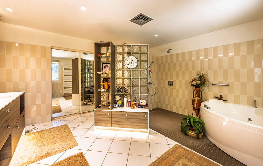 Située sur la commune de Bidart, à proximité immédiate de toutes les commodités (supermarché, plages, autoroute, boulangerie), cette splendide villa vous séduira par son environnement calme, sans aucun vis-à-vis, et son cadre enchanteur avec un magnifique parc arboré, une bodega et une piscine conviviale.