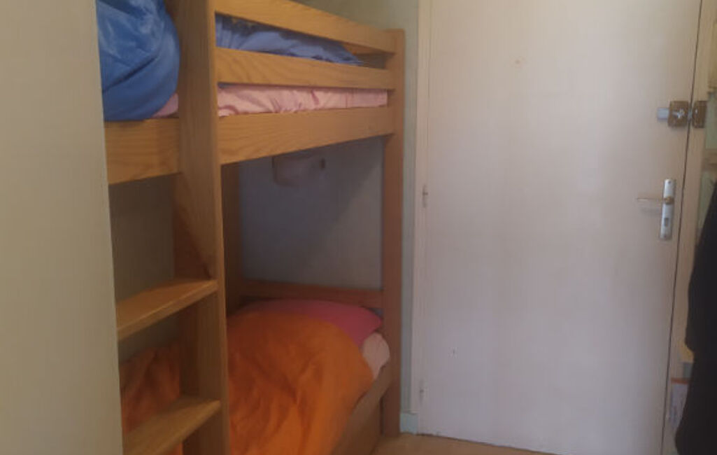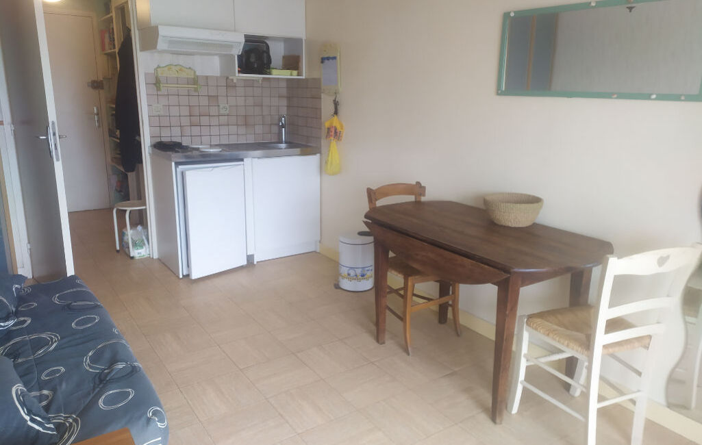 Disponible de fin mars à fin juin 2026. Ce studio comprend une entrée avec lits superposés, une pièce de vie avec coin cuisine aménagée et équipée, un balcon exposé sud, et une salle d'eau avec WC.