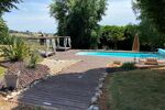 Une piscine de 10 x 5 m, avec 140 m² de plage en bois exotique, deux lits baldaquins