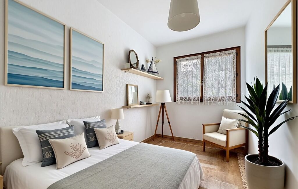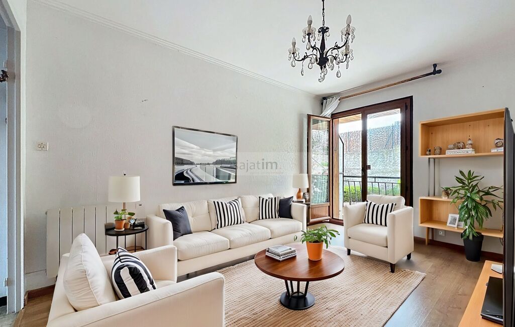 L'appartement situé au rez-de-chaussée en partie surélevé se compose d'un séjour de 18 m² bénéficiant d'un petit balcon avec une vue mer et jardin, de deux chambres confortables d'une salle d'eau et d'un wc séparé. La cuisine indépendante est aménagée et dispose d'une loggia fermée avec une vue dégagée. Les ouvertures en double vitrage assurent une bonne isolation et une luminosité optimale.