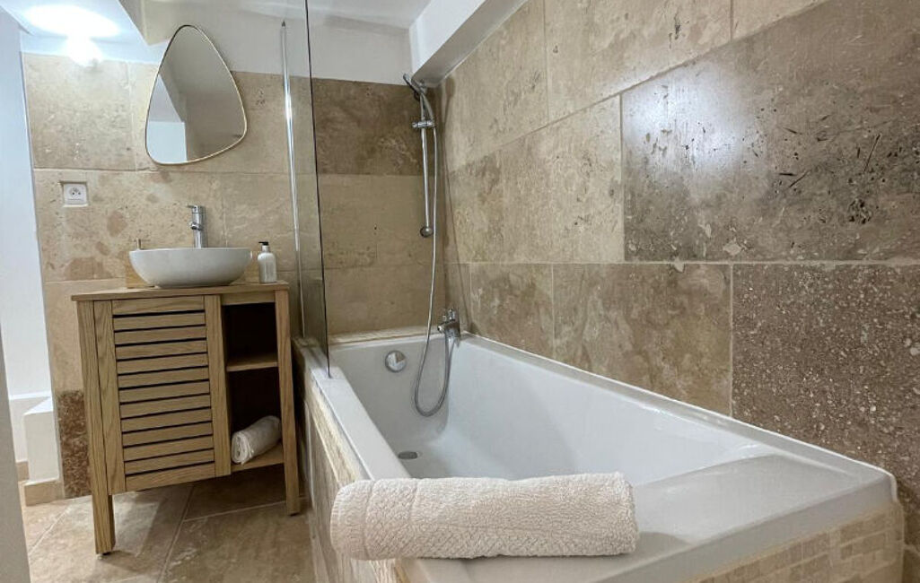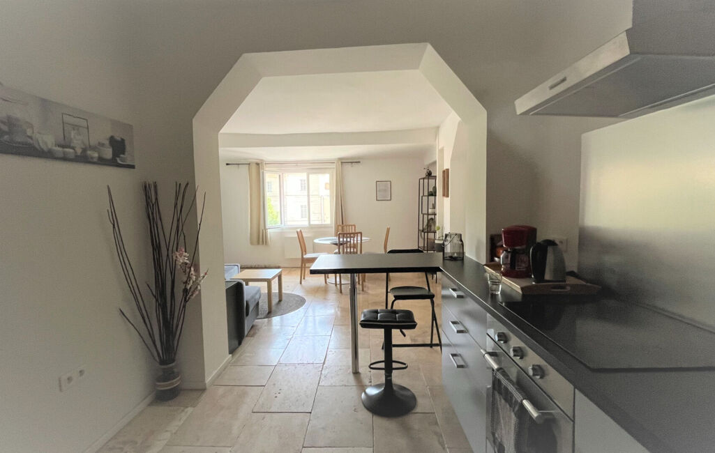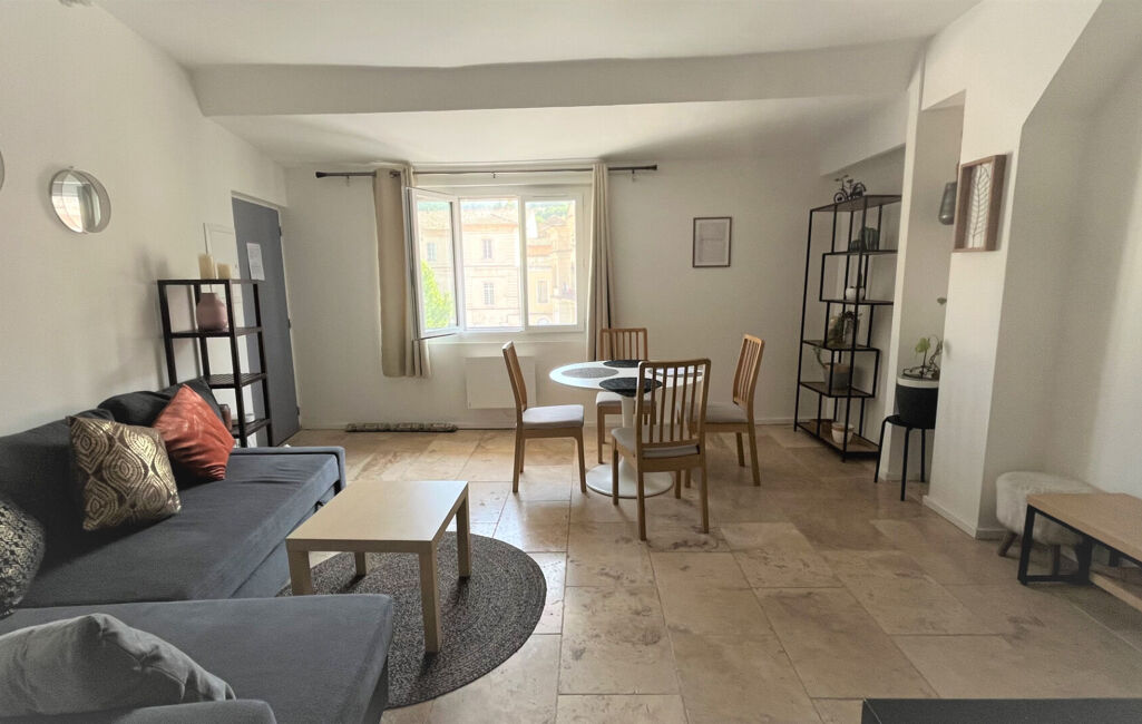 Apt, en centre ville sur une place restaurée, appartement T2 en duplex EN EXCELLENT ETAT composé d'une pièce cuisine ouverte sur le séjour salon avec canapé convertible, salle de bains avec WC, à l'étage des combles aménagés.