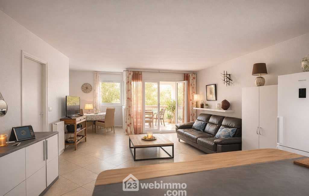 Votre agence 123webimmo l'immobilier au meilleur prix vous présente : Situé en plein cœur de Sainte-Maxime, dans une résidence avec ascenseur principalement habitée à l'année, cet appartement traversant de 73 m² offre un cadre de vie confortable et fonctionnel, idéal pour une résidence principale.