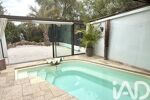 Au rez-de-chaussée, un hall d'entrée accueillant vous mène à une grande cuisine moderne équipée ouverte sur un bel espace de vie donnant sur la piscine et un jardin arboré. Cet espace est équipé d'un toit amovible électriquement.