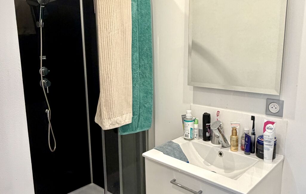 Le 1er étage se compose d'un séjour lumineux de 24 m2, d'une chambre avec placard et d'une salle d'eau.