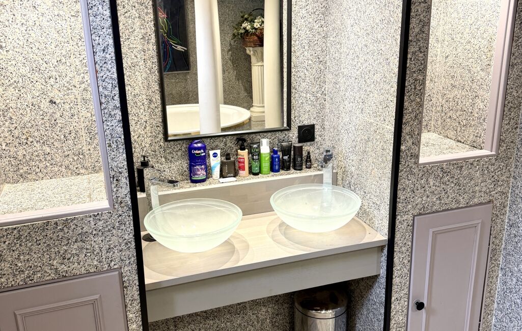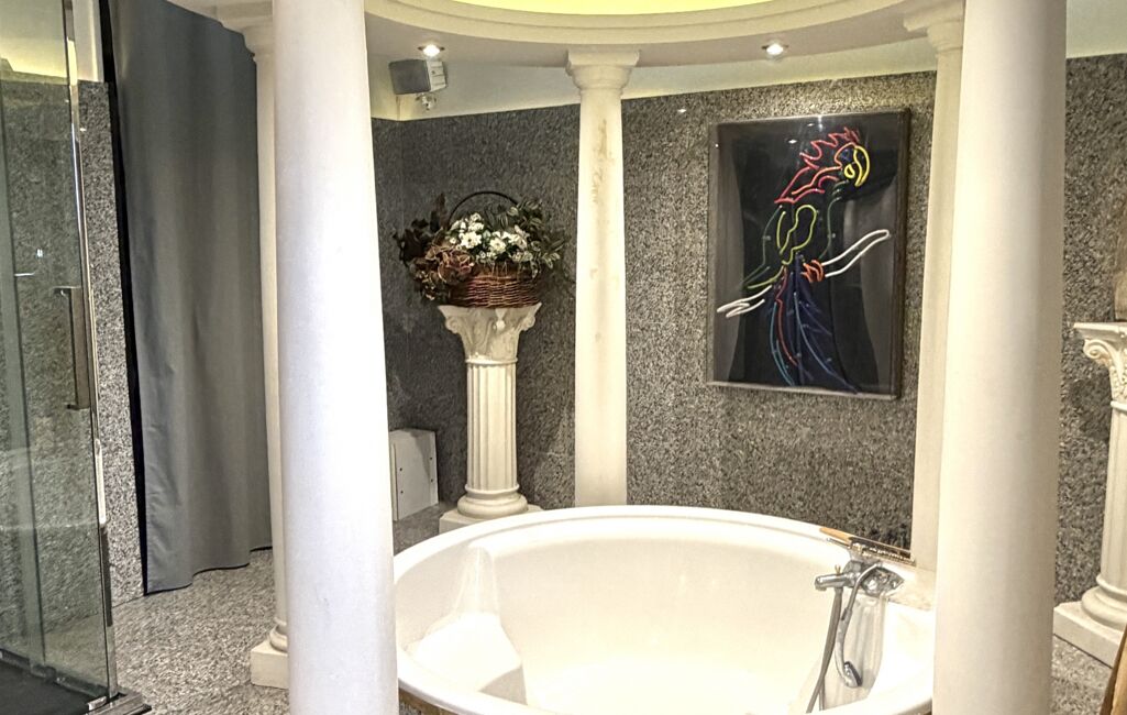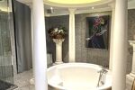 Au 2ème étage, vous découvrirez une spacieuse salle de bain au style néo-classique pensée pour la détente avec une très grande baignoire centrale, ainsi qu'une deuxième chambre avec placards et un wc indépendant.