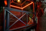 Sur chaque étage sont installés des rétroéclairages en LED ainsi que de véritables néons en verre soufflés artisanaux.