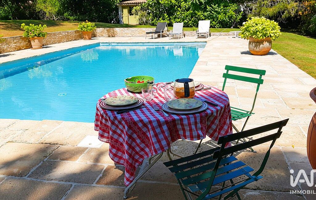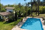 À l’extérieur, la piscine chauffée s’inscrit dans un environnement minéral et végétal maîtrisé. Terrasses en pierre, végétation mature : chaque espace trouve sa place sans rupture.