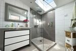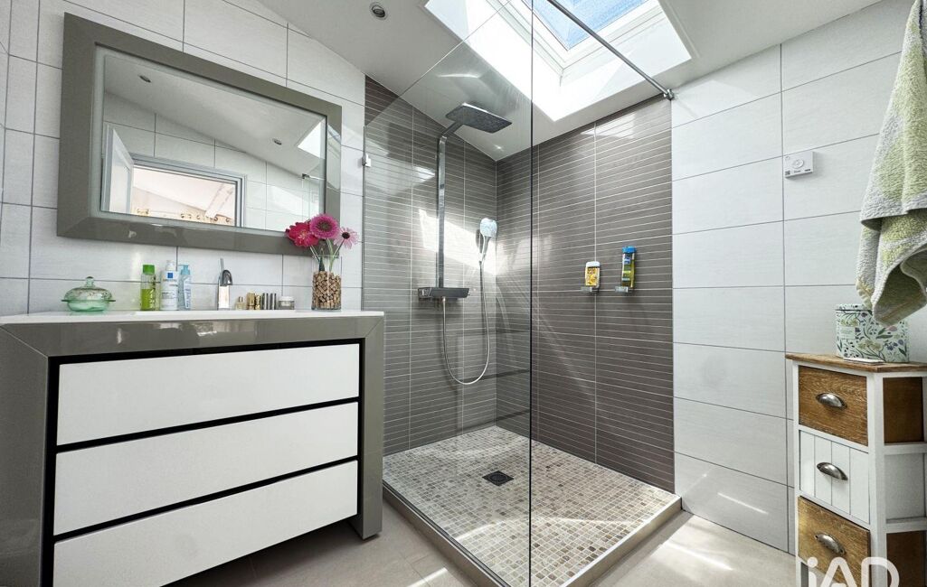 Les salles d’eau, entièrement repensées, adoptent des lignes contemporaines : douche à l’italienne, matériaux sobres, lumière naturelle.