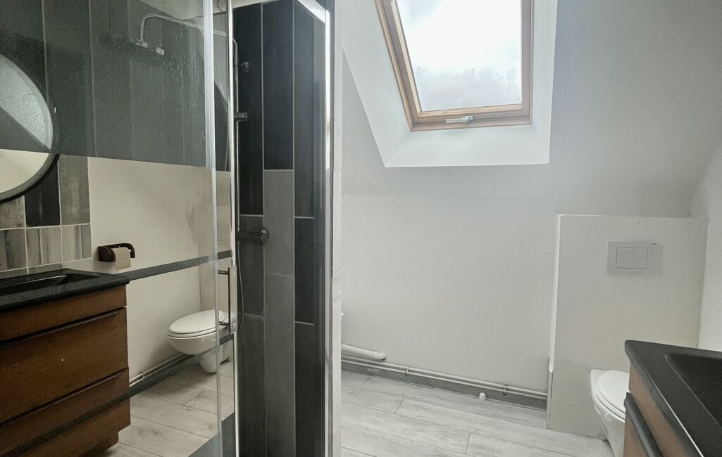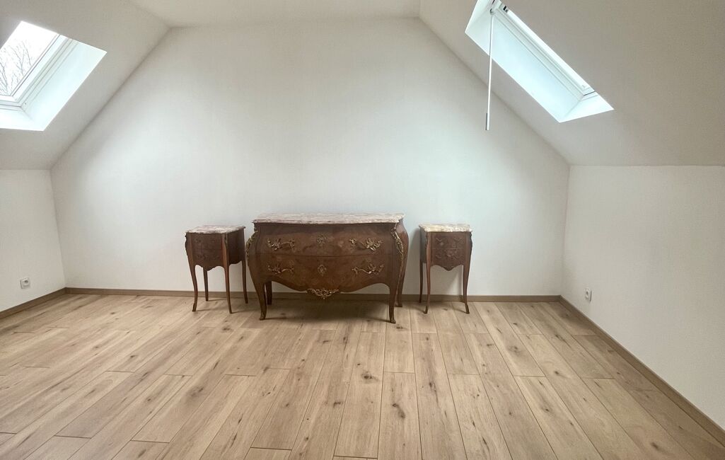 Au premier étage, un grand palier dessert trois chambres dont une avec placards intégrés et une salle d'eau avec WC.