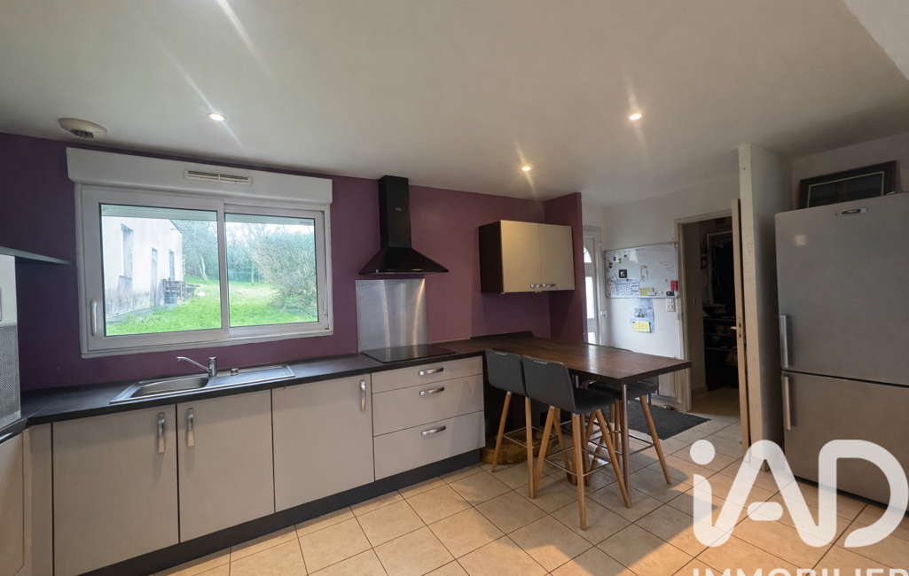Dans un environnement calme et verdoyant, découvrez cette propriété comprenant une maison de 2015 d’environ 112 m², un hangar viabilisé et une dépendance d’environ 40 m² à rénover.