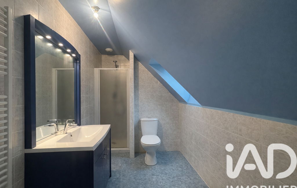La maison offre une cuisine aménagée, un séjour exposé ouest avec insert, 1 chambre au rez-de-chaussée, salle de bains (douche et baignoire), puis 4 chambres et un bureau à l’étage.