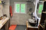Au premier étage une pièce à vivre 22 m² avec cuisine en bois, plan de travail en garnit noir, un poêle à bois neuf. Un couloir avec un grand placard , une salle d’eau avec WC, douche italienne et fenêtre, une grande chambre 18 m², très lumineuse, deux fenêtres et une belle porte-fenêtre expo, plein sud.