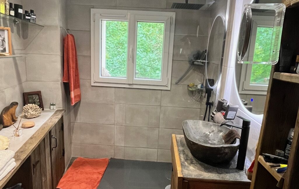 Exposé sud , sud ouest, sur deux niveaux, huisseries, volets roulants solaires, électricité et plomberie neuf. 2023/2024