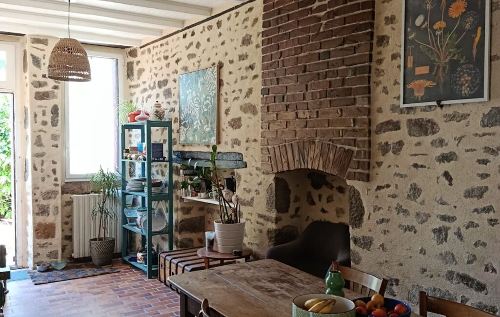 Au rez-de-chaussée, découvrez un grand salon lumineux agrémenté d'une cheminée ouverte, une cuisine équipée et fonctionnelle, un wc séparé, une buanderie, un garage et une cave.