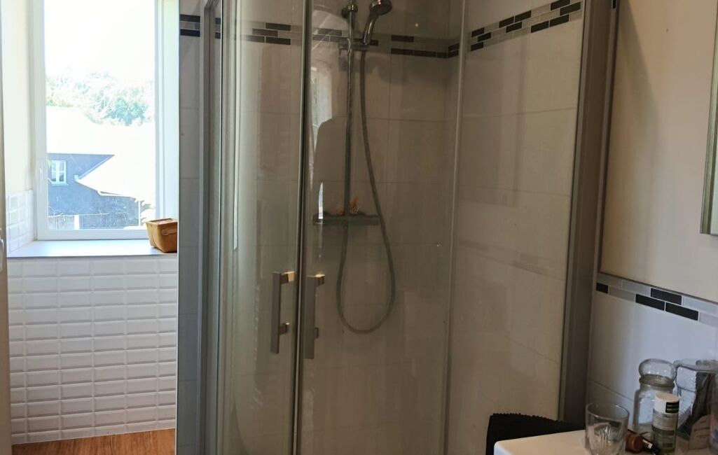 A l'étage, profitez d'une belle suite parentale rénovée avec le cachet de l'ancien, d'une deuxième chambre avec lavabo et wc, et d'une pièce pittoresque pouvant faire office de cabinet d'indépendant, de salon ou de bureau.