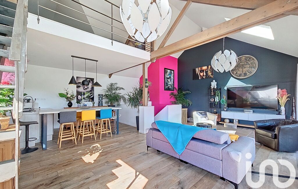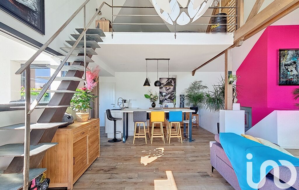 À l'étage, une mezzanine offre un espace bureau/lecture ainsi qu'une chambre.