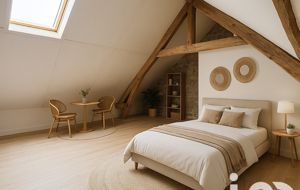 Au premier étage : un palier dessert deux grandes chambres avec dressing, puis une deuxième salle de bain (seule pièce de la maison qui reste à refaire). Au deuxième étage, vous bénéficierez d'un vaste grenier.