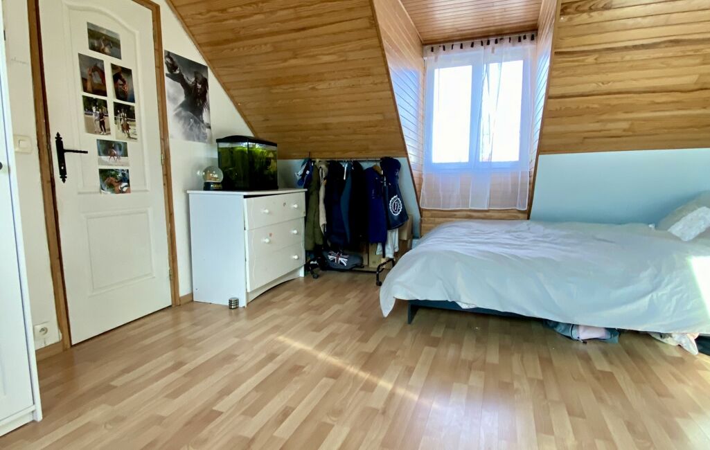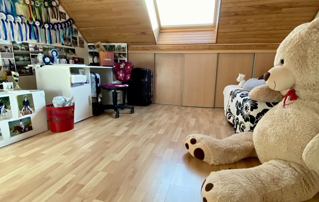Au niveau supérieur, un bureau et une belle chambre.