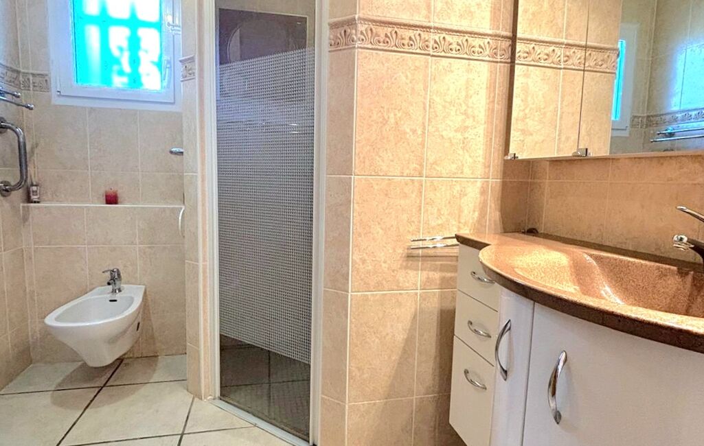 Enfin, vous accéderez au garage carrelé de 45m2 avec une porte de garage motorisée, WC et évier.
