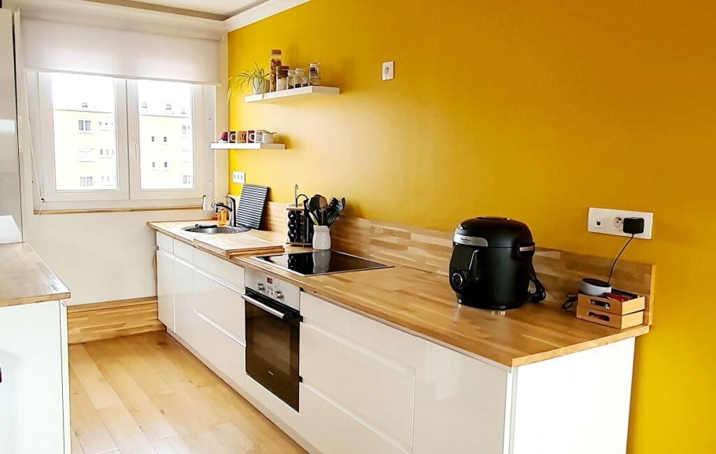 L’intérieur offre une belle pièce de vie baignée de lumière grâce à sa double exposition. Vous y trouverez un salon cosy, un séjour convivial ainsi qu’une cuisine entièrement équipée, pensée pour allier praticité et confort.