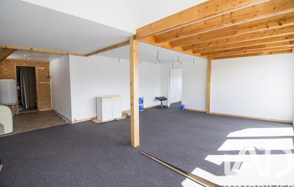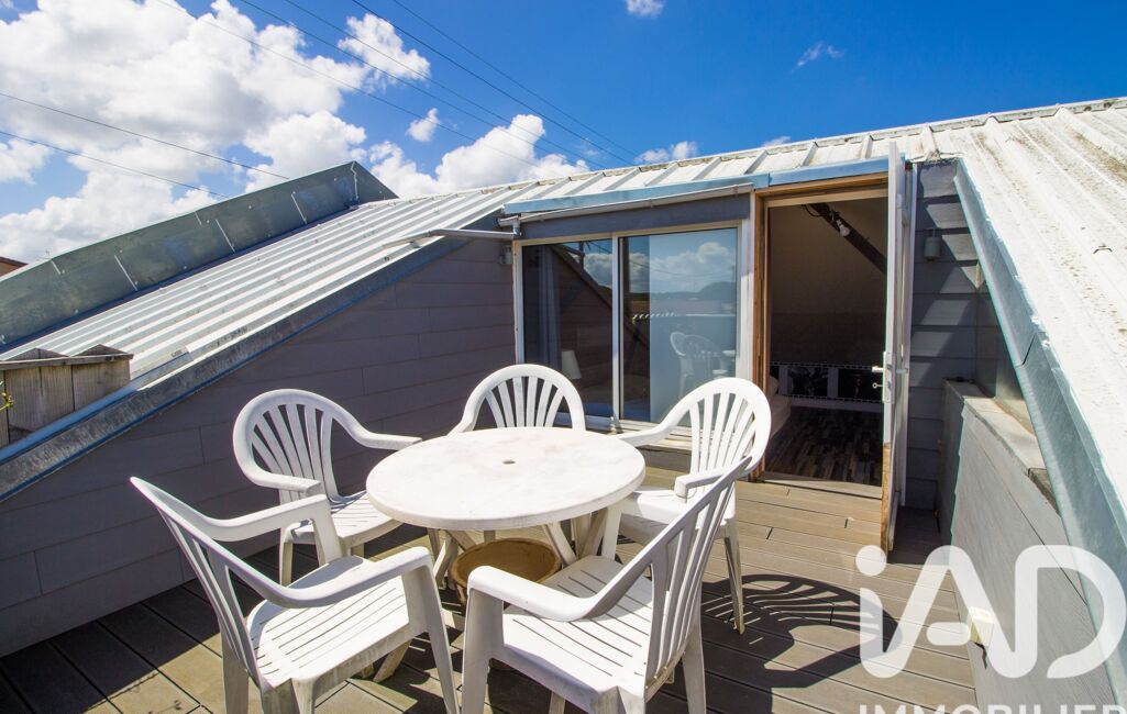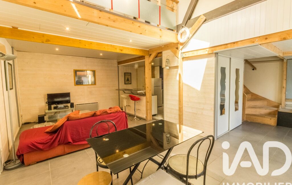 Une entrée indépendante à l'arrière du bâtiment vous permet d'accéder à un appartement atypique. Au rez-de-chaussée vous trouverez une entrée avec des rangements, une cuisine ouverte sur la pièce de vie ainsi qu'une salle d'eau avec WC. L'étage se compose de trois espaces de couchage, d'une mezzanine ainsi que d'un toit terrasse de 12m².