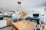 La cuisine, entièrement équipée, s’intègre harmonieusement à cet espace ouvert. Rien n’est à prévoir, tout est prêt à accueillir vos projets de vie. L’atmosphère y est chaleureuse, contemporaine et facile à personnaliser.