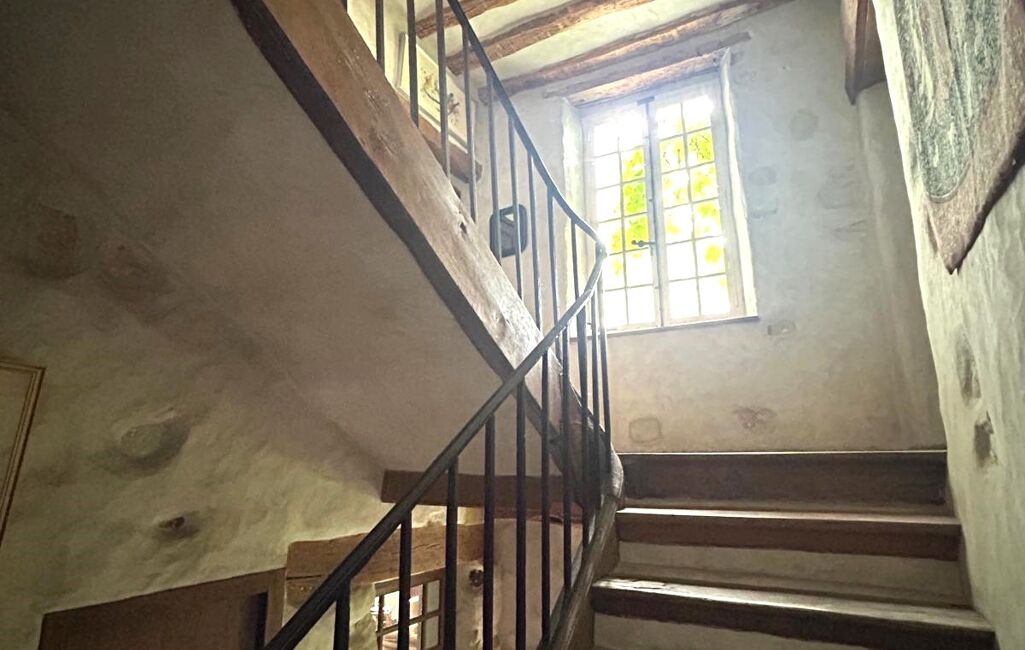 Une majestueuse porte ancienne, une fenêtre à meneaux, et de nombreuses ouvertures d’époque prolongent cette immersion dans un art de vivre hors du temps.