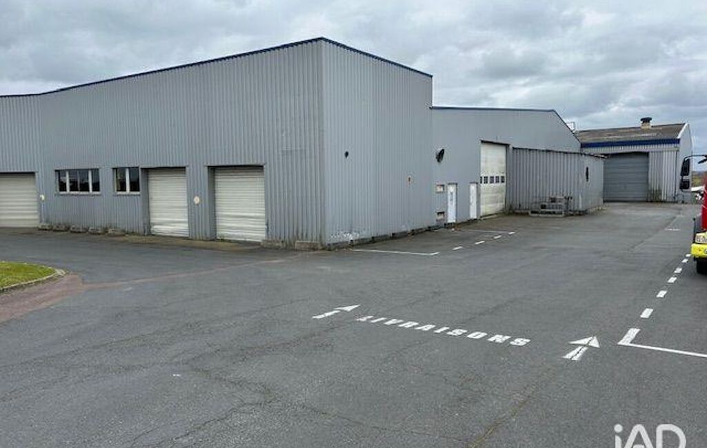 Ce bâtiment industriel en fibre ciment bardage simple peau possède un espace bureau en très bon état et fonctionnel sur une surface de 450 M2 environ