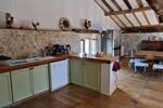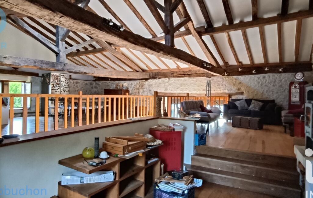 Au rez-de-jardin, qui est aussi l'étage de la maison ouvert en double mezzanine, vous découvrirez sur le premier coté mezzanine une spacieuse salle à manger de 41m², idéale pour des repas conviviaux en famille ou entre amis avec la cuisine ouverte équipée. en face donc visible, un espace salon très agréable avec poêle a bois et accès à la terrasse de 15m², parfaite pour profiter des repas en extérieur.