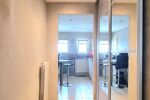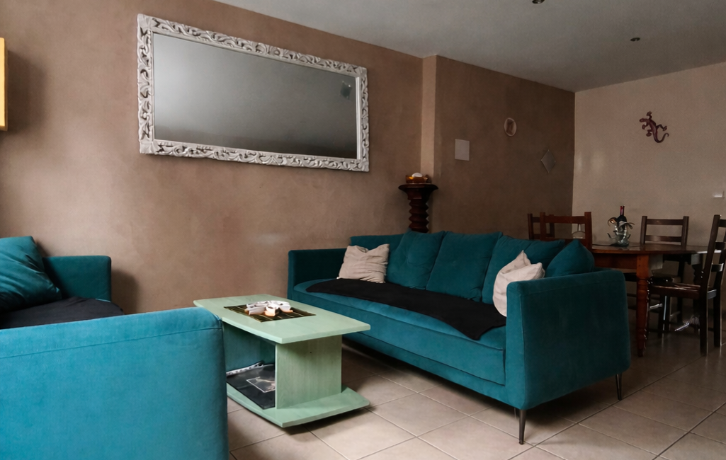 Dès l’entrée, un hall dessert un WC indépendant, une pièce d’environ 15 m² pouvant être dédiée au rangement ou au stockage, ainsi qu’une pièce de vie traversante composée d’un salon, d’une salle à manger et d’une cuisine équipée.