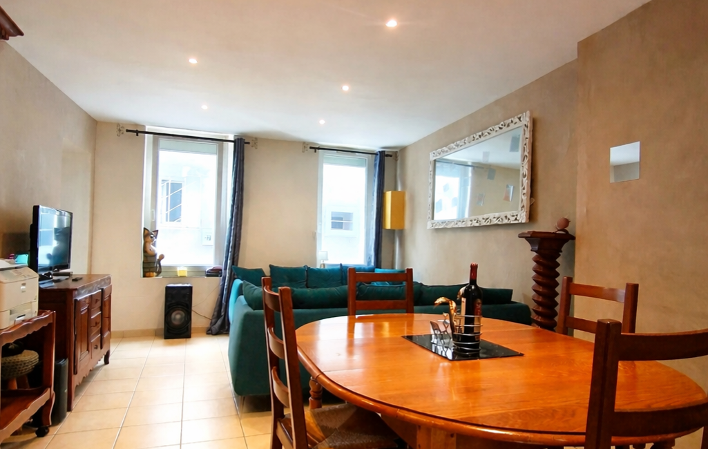 iad France - Michèle Blart vous propose: Maison de village T6 de 123 m2 | 5 Chambres | Traversante | Terrasse sans vis-à-vis | Chauffage au fioul | Menuiserie PCV double vitrage | Volets roulants électrique | Façade en pierre | Stationnement à proximité | Charme et authentique.