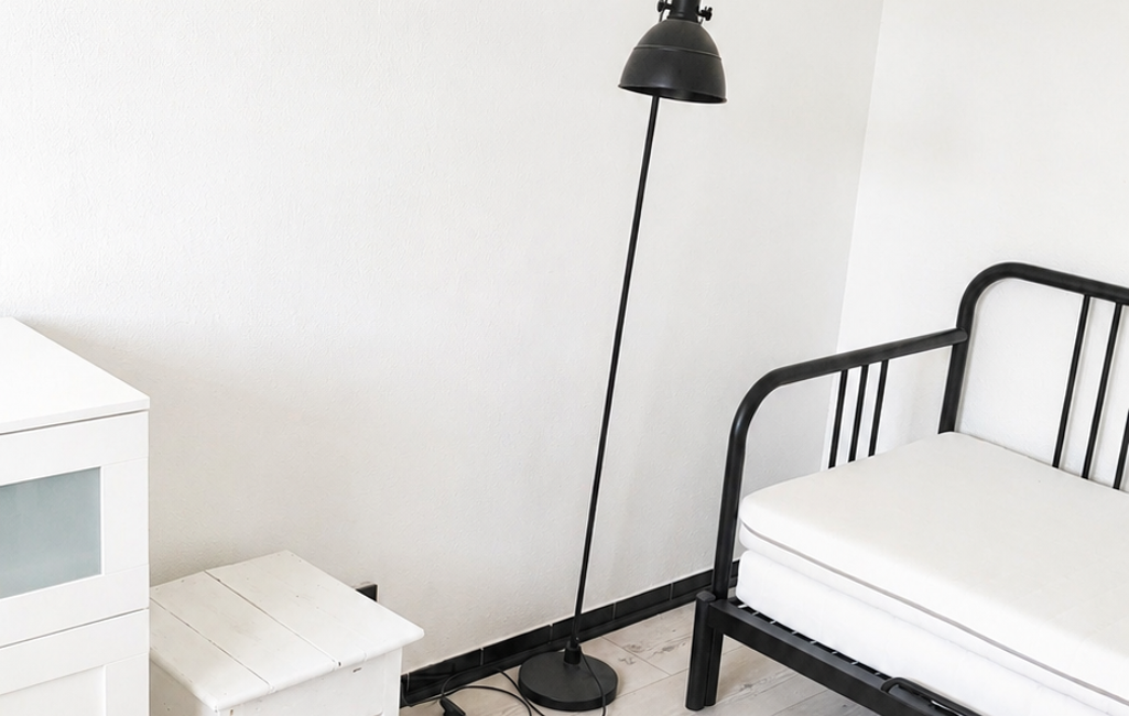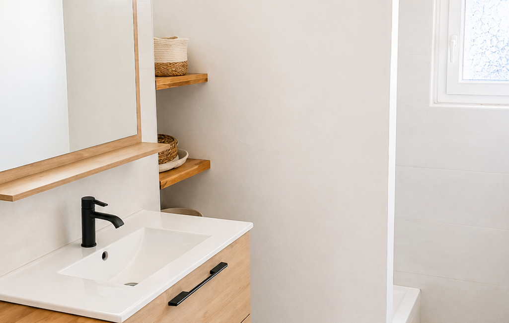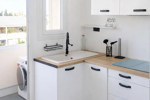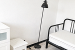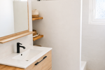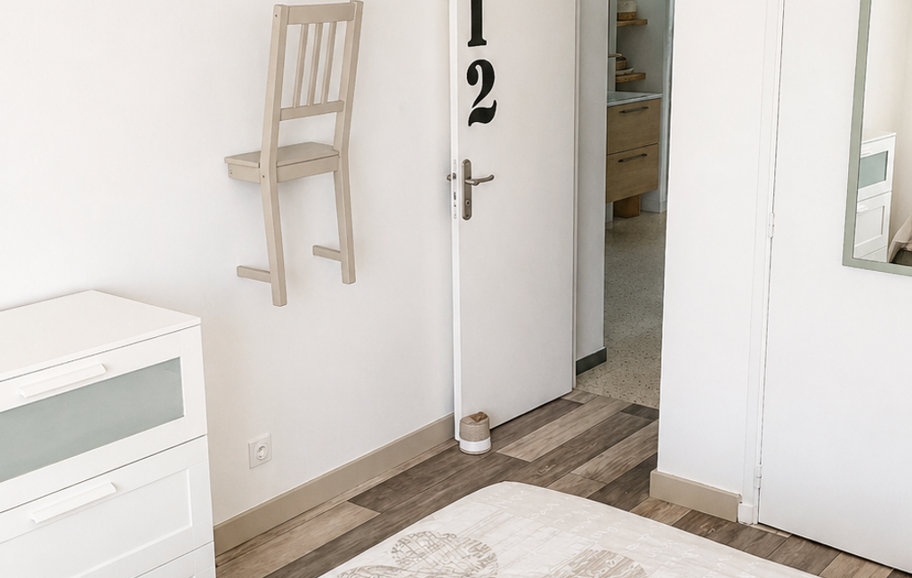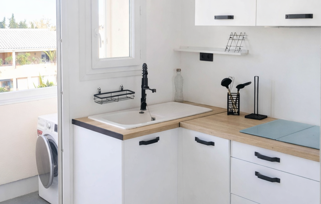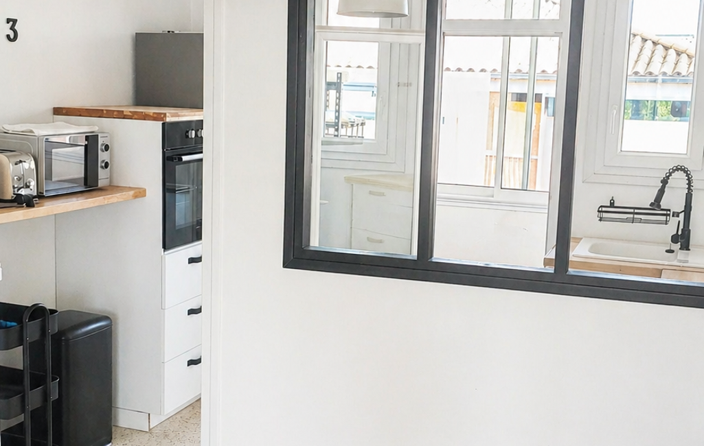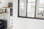 La cuisine moderne et équipée, vous plaira par son côté 'déco industrielle'. La salle d'eau de belle taille, douche à l'italienne, avec une vraie fenêtre est pratique (les toilettes sont séparées).