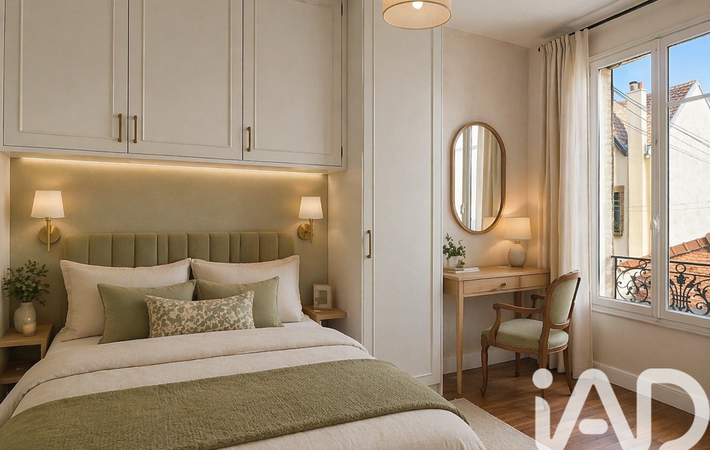 Gare des Vallées à 7 min à pied (ligne L), bus direct Champerret, écoles à 2 min et commerces à proximité.