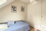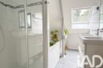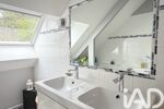 À l’étage, quatre chambres, agrémentées de larges ouvertures, une salle de bains avec douche, baignoire et double vasque, un WC séparé et de nombreux rangements viennent parfaire l’ensemble.