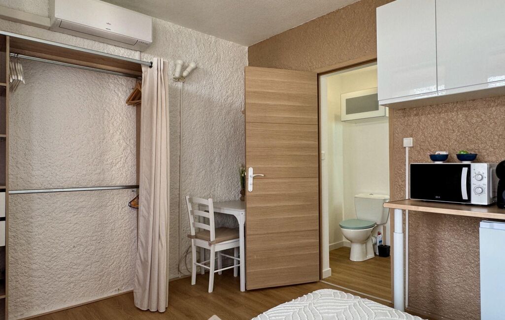 Découvrez ce studio rénové avec goût et vendu meublé. Le bien se compose d'une pièce de vie lumineuse avec espace séjour/nuit de 12 m2, une kitchenette aménagée et équipée, ainsi que d'une salle d'eau moderne avec WC. Accessible de plain-pied, sa décoration actuelle vous séduira et l'agencement a été optimisé pour offrir un espace fonctionnel et agréable. Équipé d'un système de chauffage réversible par pompe à chaleur, garantissant confort en toute saison et maîtrise des consommations énergétiques.
