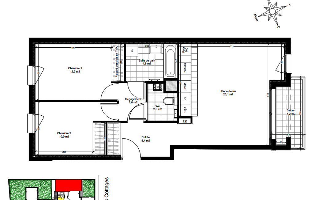 - d’un séjour cuisine de 25m2 ouvert sur un balcon de plus de 4m2
