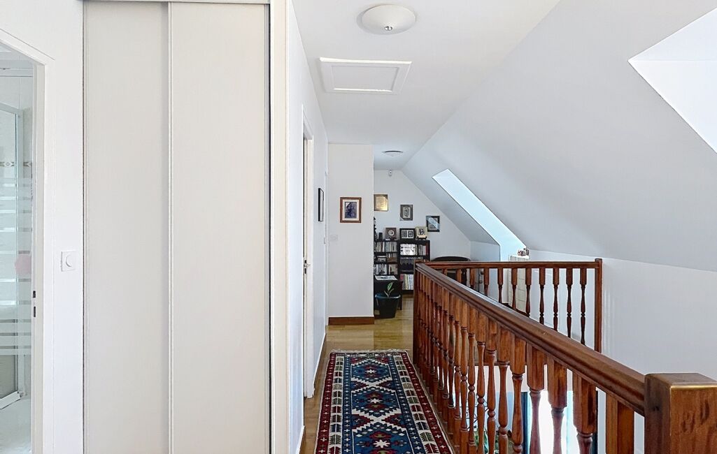 Dès l’entrée, découvrez un bel espace de vie lumineux, parfait pour partager des moments conviviaux. La maison propose 1 chambre au rez-de-chaussée, idéale pour une vie de plain-pied ou un bureau, ainsi que 4 chambres à l’étage, dont une suite parentale avec salle de bains.
