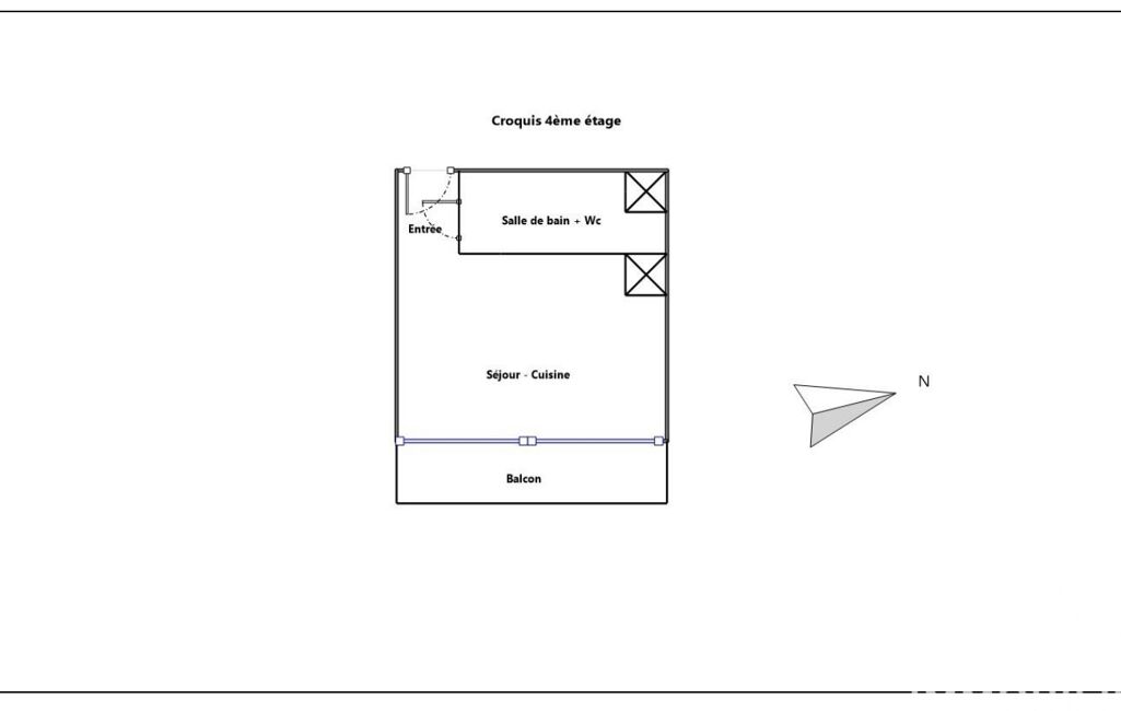Le studio, lumineux grâce à son exposition Sud-Est, se compose :