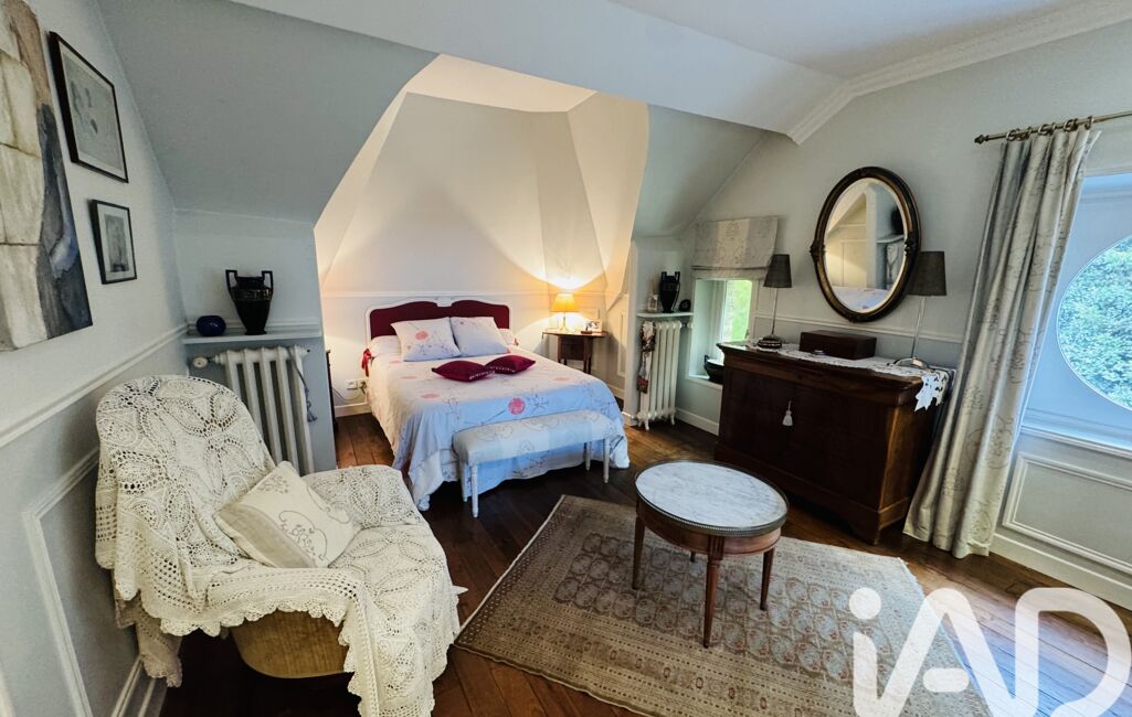 À l’étage, un grand palier dessert deux suites parentales avec salle de bain, une chambre et un WC. Un escalier accède à la tourelle.