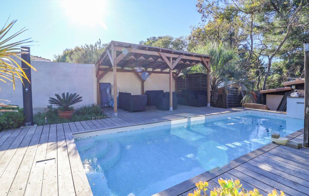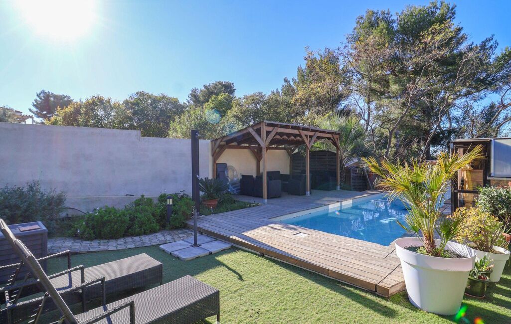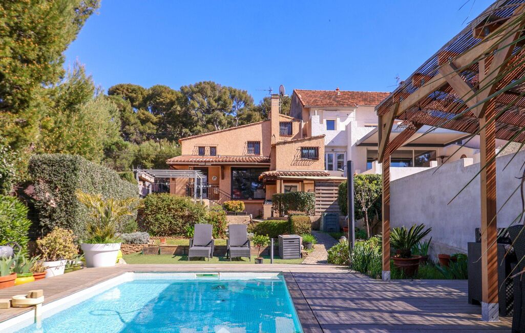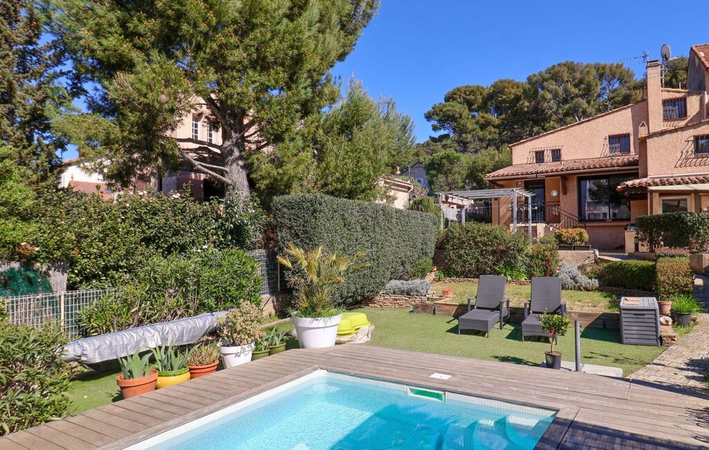 Votre agence 123webimmo vous présente : MAZARGUES. Exclusivité. Nichée dans une impasse au calme absolu dans un environnement boisé préservé, en lisière du Parc National des Calanques près de Mazargues, charmante maison avec piscine de type 5 de 147 m2. Elle propose un premier niveau offrant un séjour de 42 m2 que jouxte une cuisine ouverte sur une terrasse, une chambre avec sa salle d'eau et toilettes séparés, un bureau et une buanderie complètent ce niveau. À l'étage se trouvent deux chambres se partageant une salle d'eau et un toilette. Une quatrième chambre enrichit la partie nuit. Le jardin baigné de soleil permet de profiter d'une piscine maçonnée accompagnée d'un salon extérieur, un vaste atelier de 17 m2 complète l'ensemble. Une cuisine d'été fermée apporte un confort supplémentaire. Climatisation réversible dans toute l'habitation, menuiseries aluminium. Une cave en sous-sol de 16 m2 offre un bel espace de stockage. Stationnement aisée dans la rue. Ecole élémentaire Vaccaro, collège Grande Bastide. Les informations sur les risques auxquels ce bien est exposé sont consultables sur le site Géorisques : www.georisques.gouv.fr.