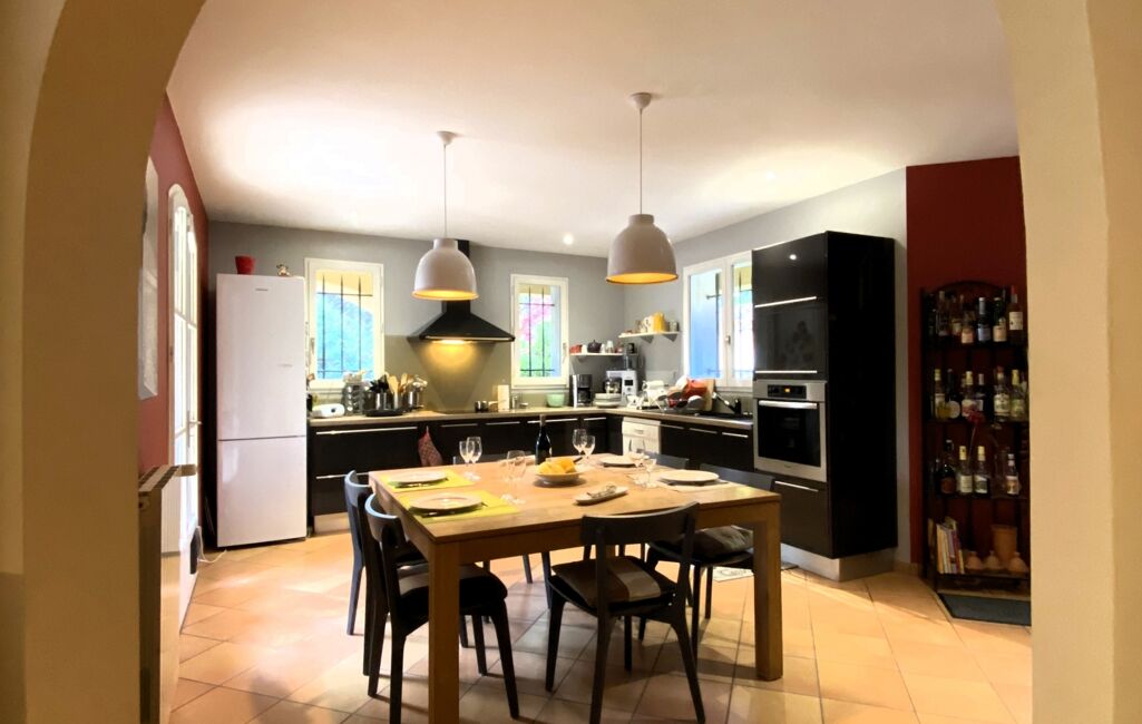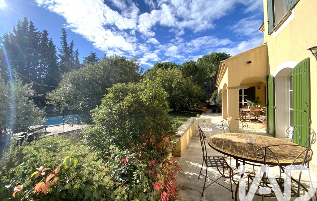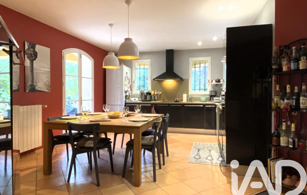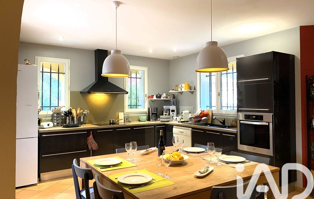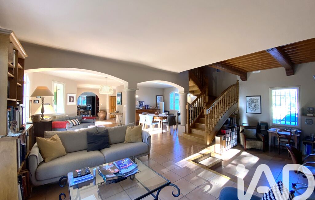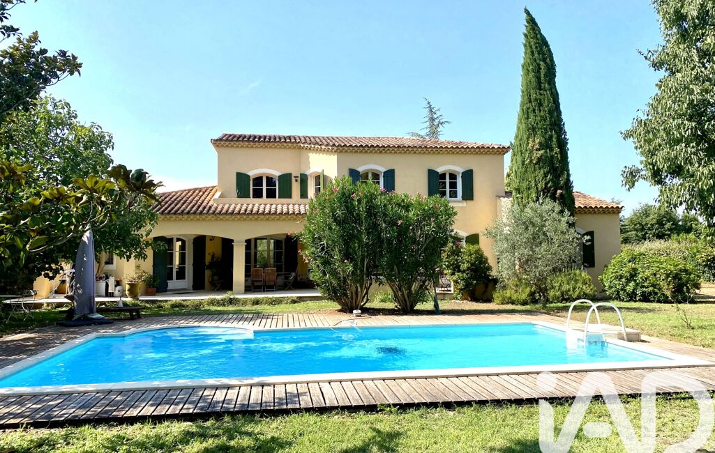 iad France - Olivier Gamand vous propose: Dans un quartier résidentiel au calme absolu entre l'Isle sur la Sorgue et le Mont Ventoux, maison d'architecte de 204m², 7 pièces, 4 chambres sur un terrain de 2500m² arboré avec piscine et sans vis à vis.