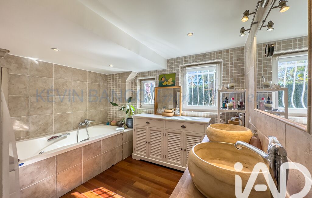 - Le rez-de-jardin est entièrement aménagé avec deux chambres (25m² environ disposant d'un grand dressing et 10 m² environ), un bureau de 12 m², une salle de bain (avec douche à l'italienne, baignoire 'balnéo' et double vasque), un WC indépendant ainsi qu'une cave à vin et un cellier.
