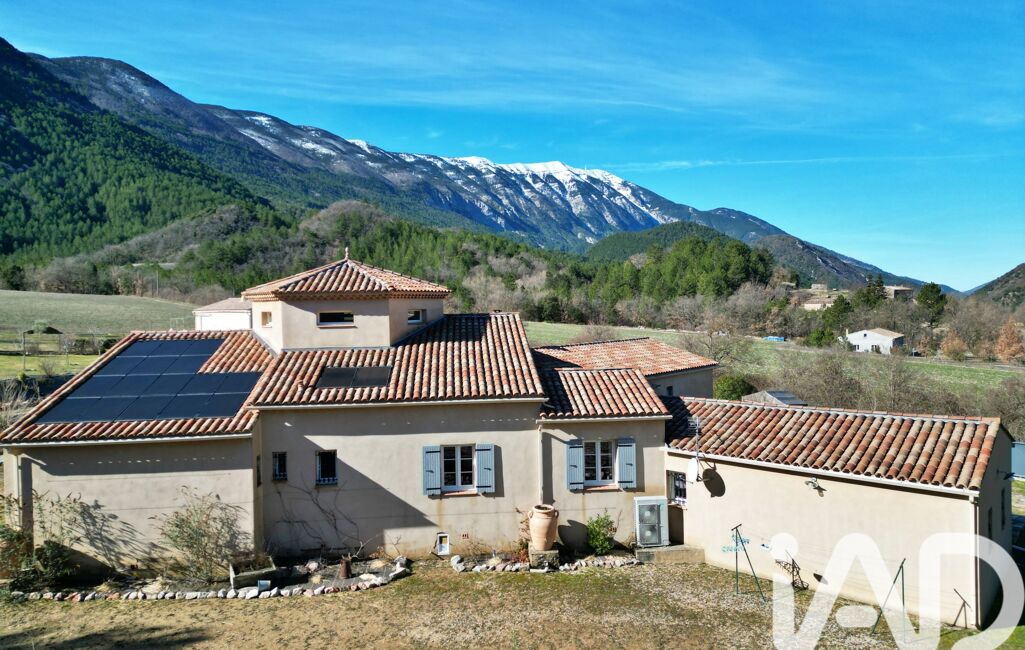 iad France - Yohan Aubry vous propose: Située au cOEur de la vallée du Toulourenc, à la frontière du Vaucluse et de la Drôme provençale, cette élégante et confortable maison de plain-pied d’environ 266 m² habitables offre un cadre de vie remarquable avec une vue imprenable sur le Mont Ventoux.