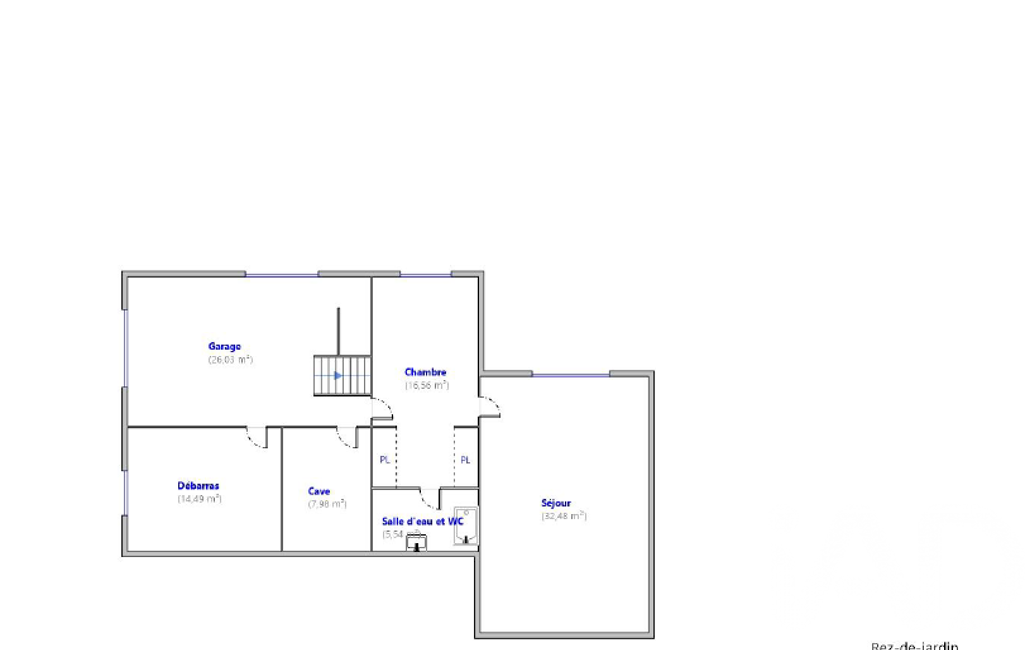 En rez-de-jardin (accessible par l’intérieur) :