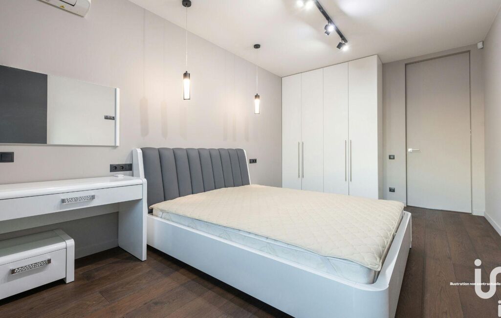 Côté finitions, rien n’a été laissé au hasard : parquet raffiné dans les chambres, carrelage grand format dans les pièces de vie, volets motorisés, double vitrage bois pour un confort acoustique et thermique optimal. La salle de bains principale est équipée d’un meuble vasque contemporain, miroir lumineux et sèche-serviettes électrique.