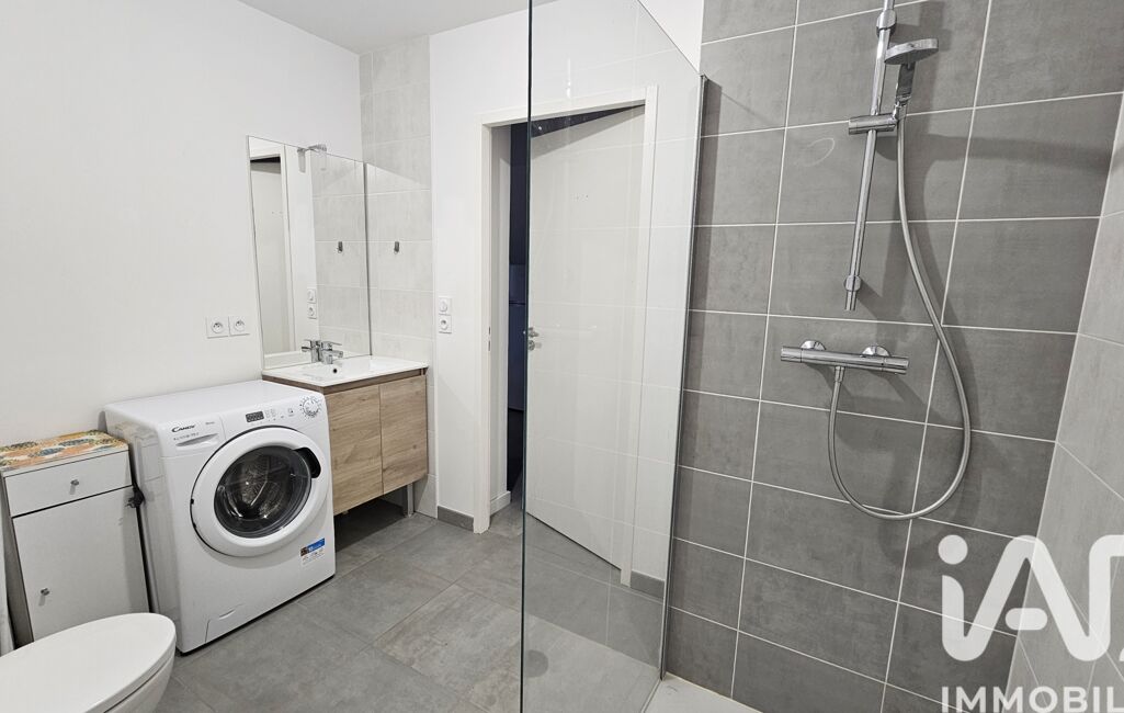 La salle d’eau, moderne, est équipée d’une douche contemporaine. Le logement bénéficie de deux volets roulants électriques sur les portes-fenêtres, apportant confort et praticité au quotidien.