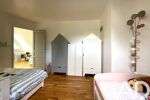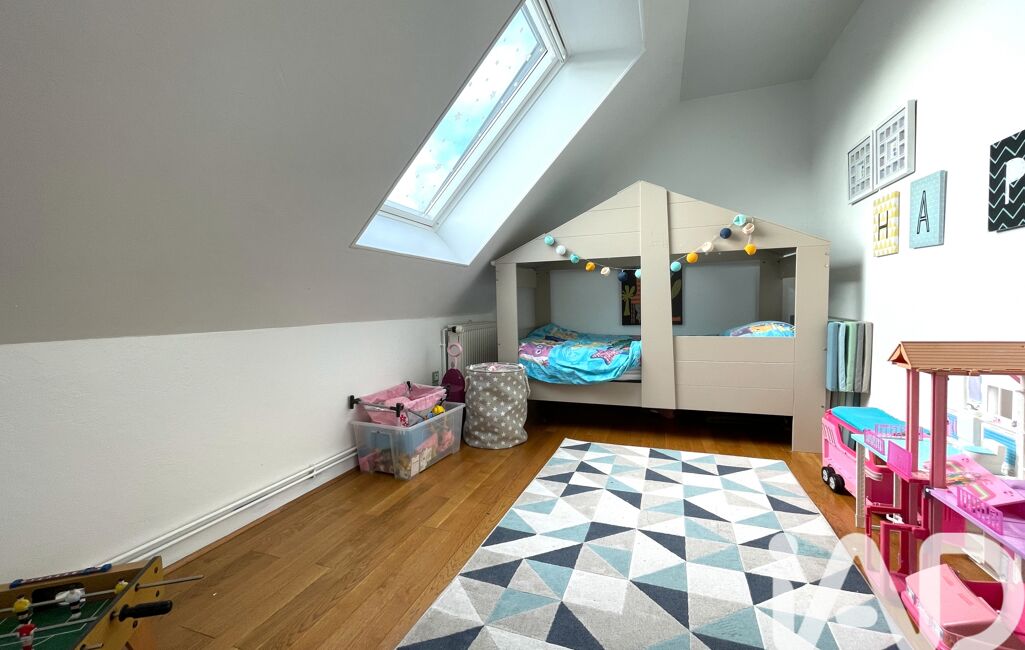 À l’étage, un grand palier pouvant faire office de bureau ou salle de jeux dessert trois chambres, une salle d’eau, des WC et une buanderie.